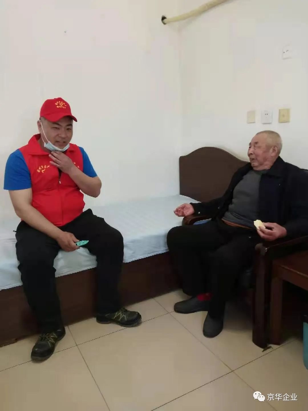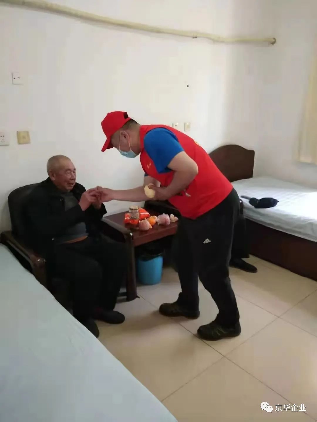 “誰言寸草心,報得三春暉”,為弘揚中華民族尊老、敬老的傳統美德,在中國共產黨建黨100周年來臨之際,為增強企業社會責任感,充分發揮黨員干部職工先鋒模范作用,由京華企業黨支部發起成立了“愛心志愿者團隊”,秉承我團隊“不忘初心,牢記使命,奉獻社會”的宗旨,于2021年4月18日,由該團隊18名愛心志愿者組成的第一支小分隊走進了勝芳鎮敬老院,以下是活動中的剪影.......