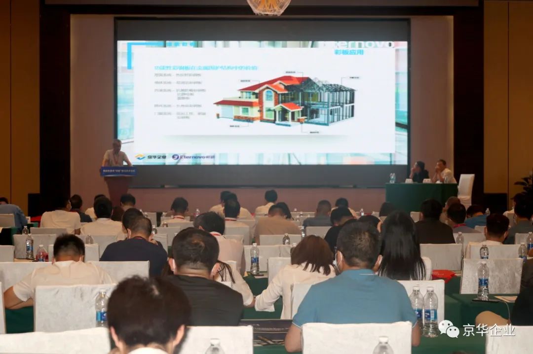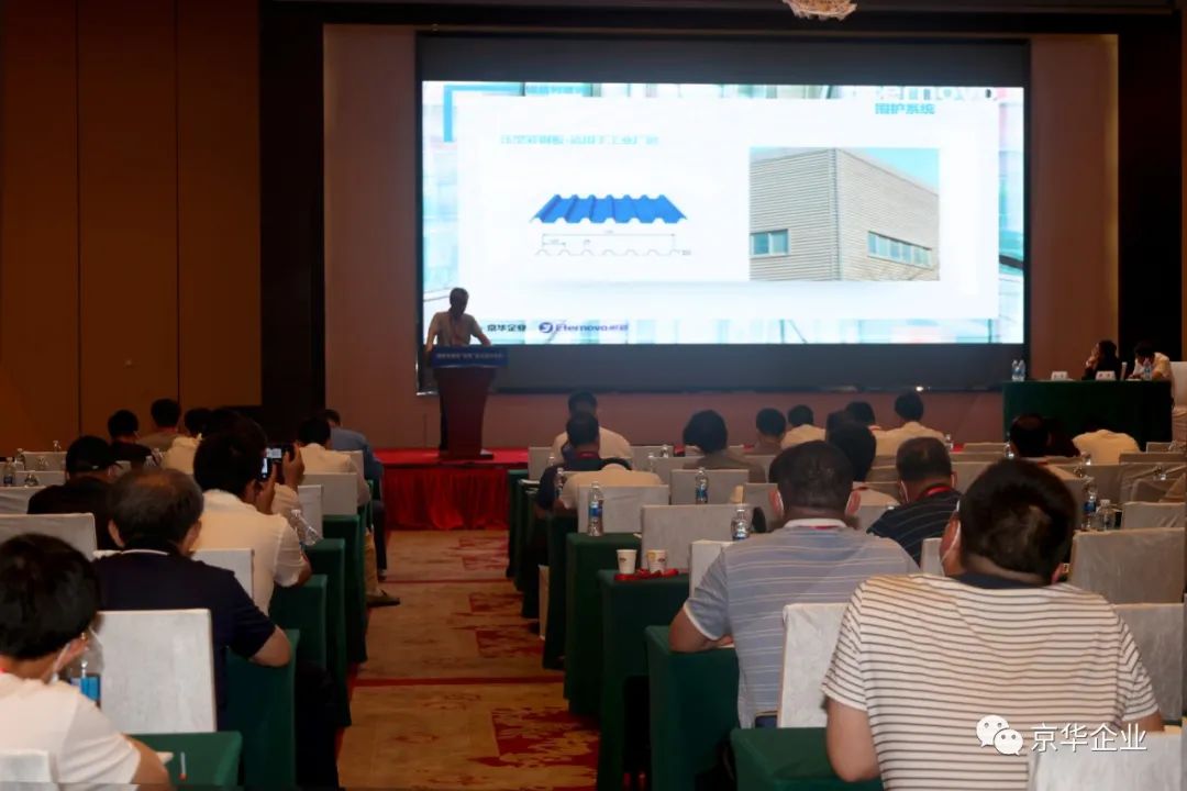 京華兆建應(yīng)邀參加此次會(huì)議,在“碳達(dá)峰、碳中和”目標(biāo)背景下,全面助力提高鋼結(jié)構(gòu)建筑質(zhì)量、技術(shù)與應(yīng)用水平并結(jié)合會(huì)議主題推出《鋼構(gòu)圍護(hù)系統(tǒng)的彩鋼解決方案》演講課題。同時(shí),京華兆建對(duì)于鋅鋁鎂鍍層板、京華彩涂板以及Eternovo恒新功能性彩涂板的介紹也得到了現(xiàn)場(chǎng)參會(huì)企業(yè)的高度關(guān)注與肯定。