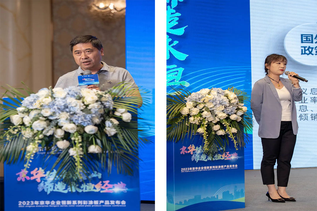 深耕合作、共謀發展。會議聯合主辦方獨家代理唐山市豐潤區營盛彩鋼有限公司董事長周小林先生、總經理周立揚先生出席會議。周總在會上發表致辭,講述了與京華企業的友好合作歷程以及對京華企業產品質量的高度認可和贊揚,并表示將繼續與京華企業展開深度合作,共同推動涂鍍板材行業的不斷發展。