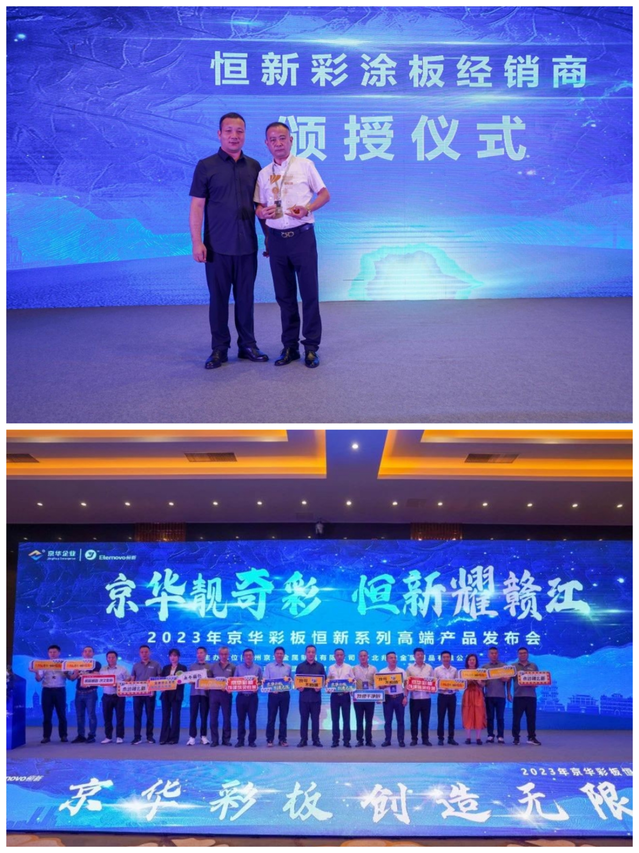在恒新彩涂板經(jīng)銷商的頒授儀式上,京華企業(yè)總經(jīng)理陳鐵柱先生為南昌市瑞鋼源金屬材料有限公司總經(jīng)理林清松先生頒發(fā)了授權(quán)書,通過此次頒授與瑞鋼源的合作也再次迎來了新的機遇,即將書寫全新的發(fā)展篇章。恒新彩涂板的成功得益于合作伙伴的支持和努力,而頒授儀式則是感謝和祝福合作伙伴最真摯的時刻。這個儀式不僅深化了雙方之間的合作,而且激勵著經(jīng)銷商繼續(xù)為恒新彩涂品牌的成功推廣努力。