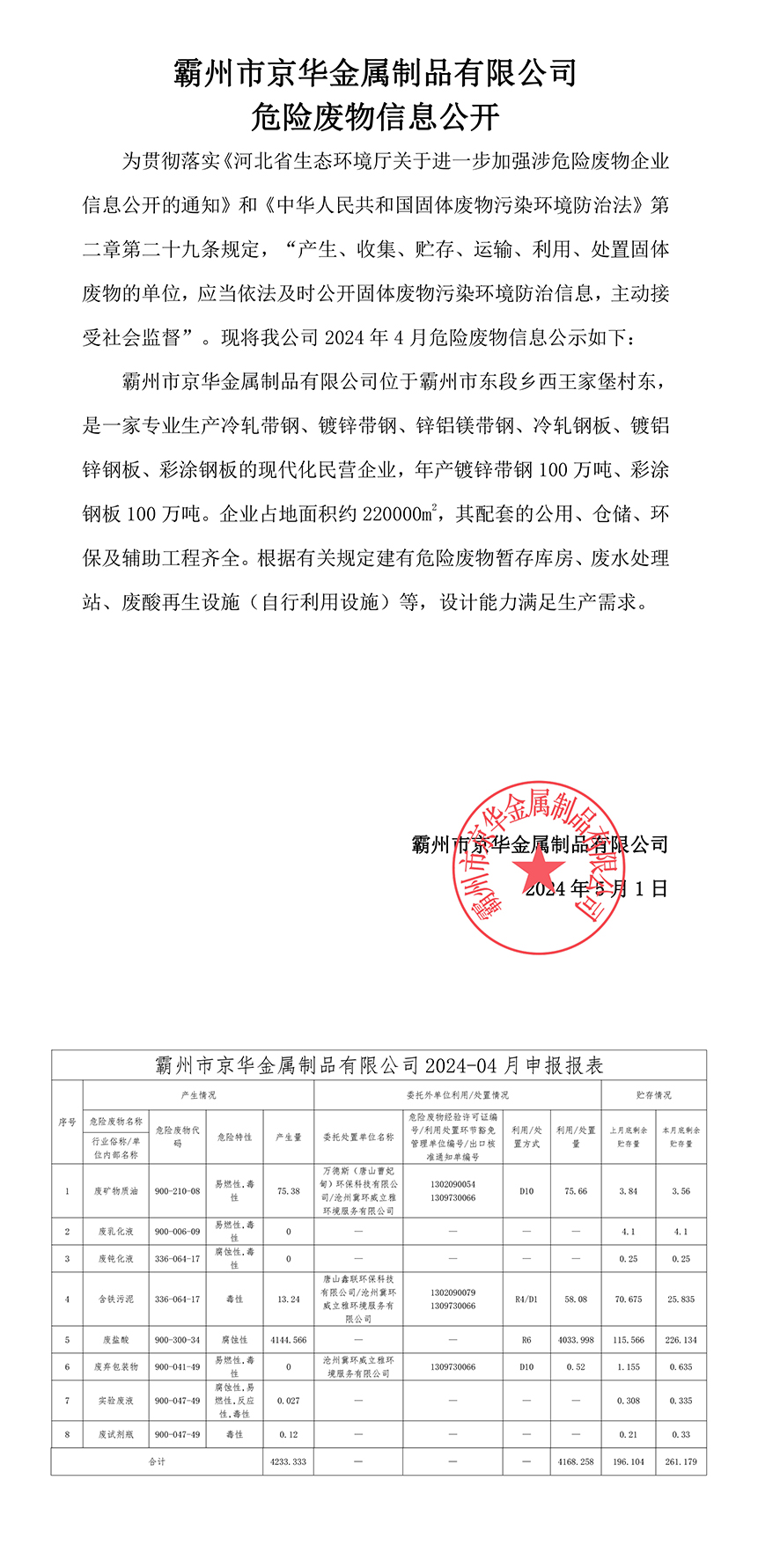 下一篇:24年5月危險廢物信息公開-霸州市京華金屬制品有限公司