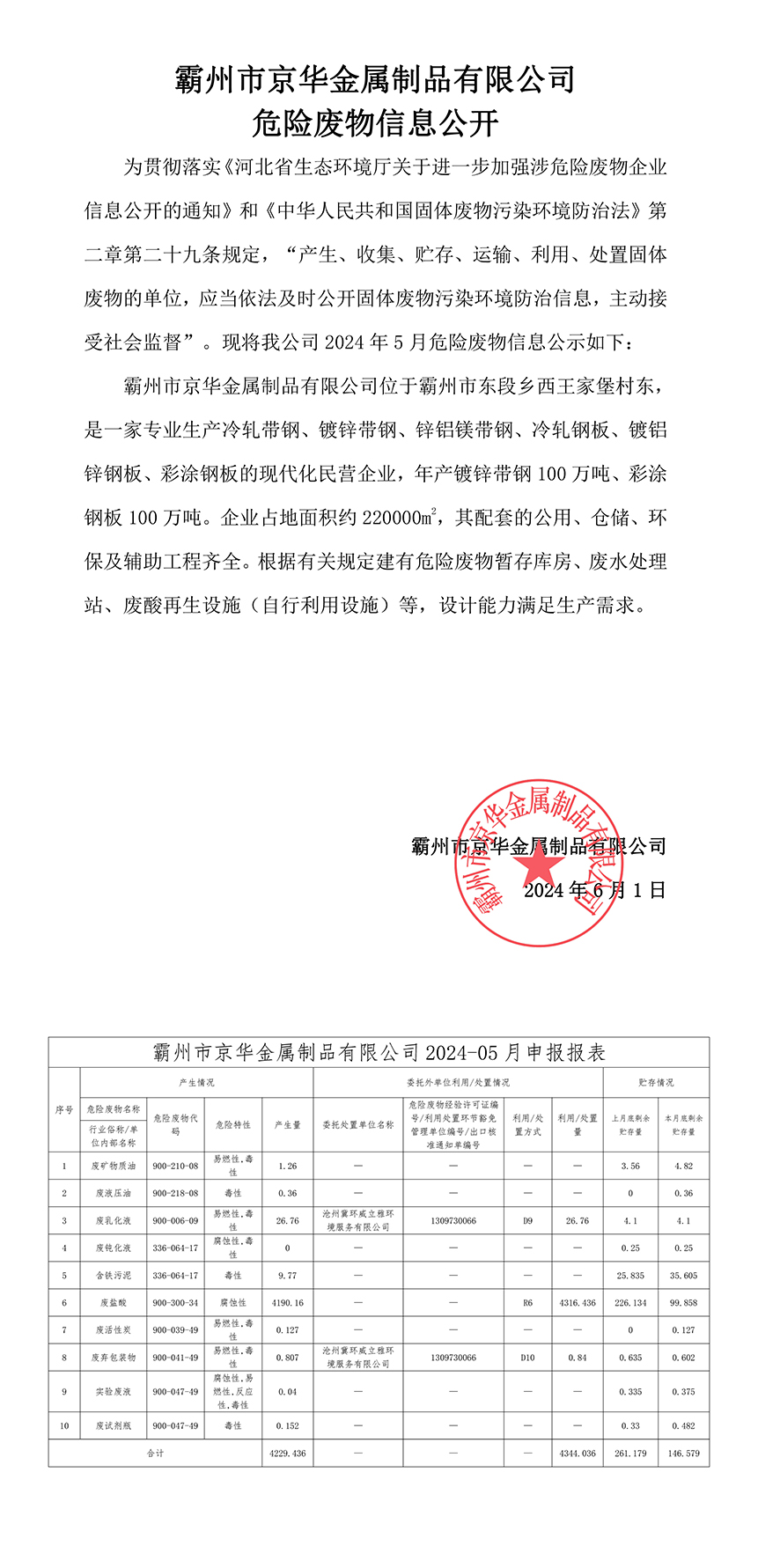 下一篇:24年6月危險廢物信息公開-霸州市京華金屬制品有限公司