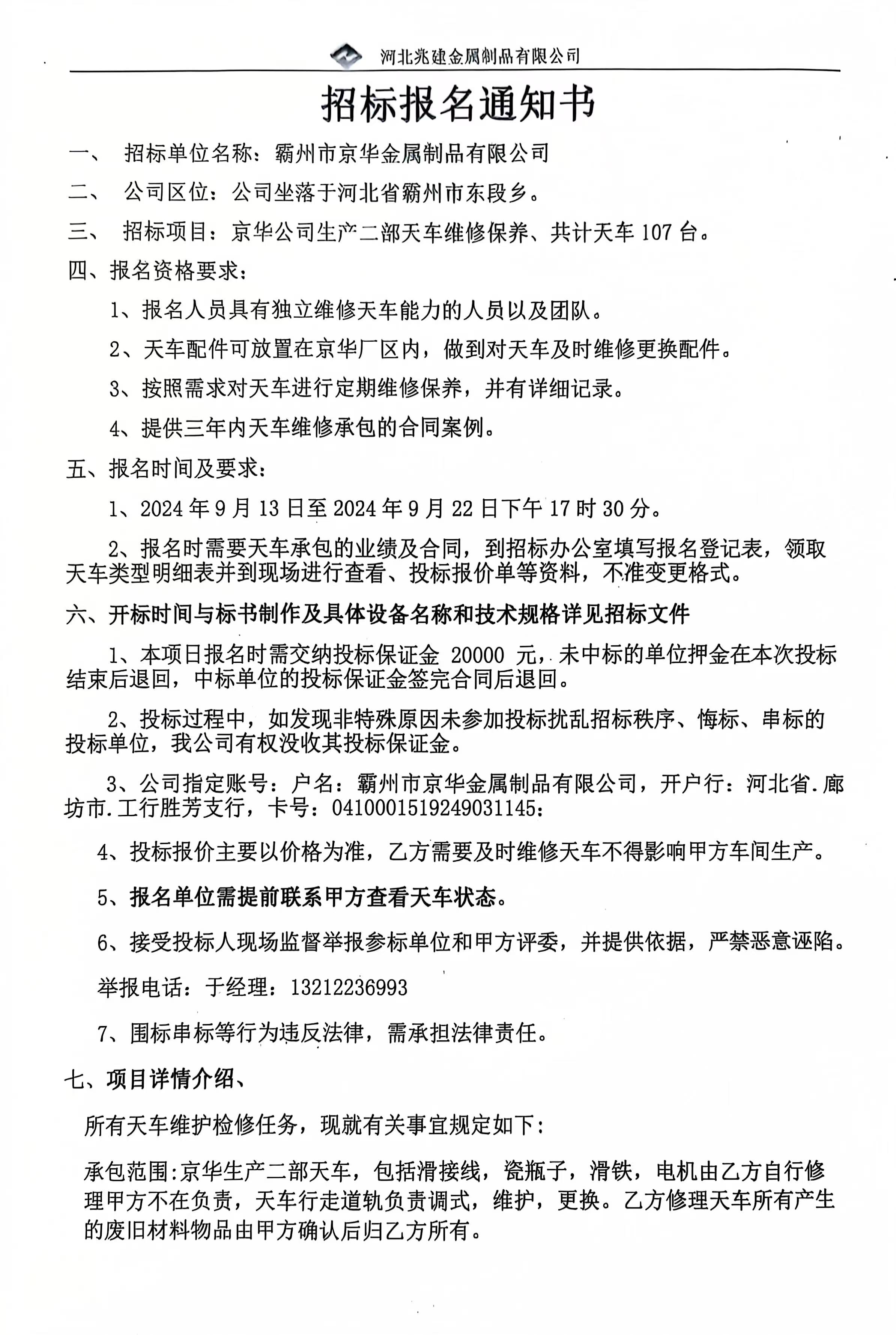 • 招標業主: 河北兆建金屬制品有限公司